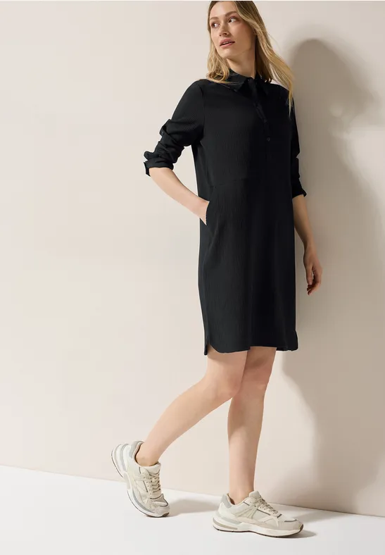 Das kurze Kleid von CECIL für Damen vereint eine moderne Struktur mit lässigen Details. Der Hemdkragen und die dekorative Knopfleiste verleihen eine klassische Note, während 3/4-Ärmel mit Turn-Up für eine lässige Optik sorgen. Der Materialmix mit Stretchanteil bietet angenehmen Tragekomfort.